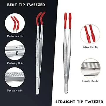 2 Piece Tweezers with Rubber Tips Set - Bent and Straight Flat Tips Tweezers PVC Coated for Stamp Coins Jewelry Crafts, Electronics(Silver, Red)
