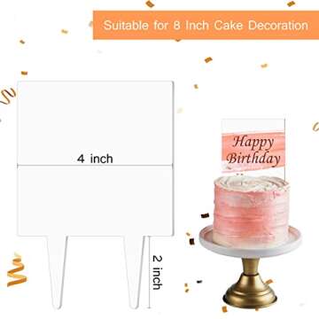 2 Pieces Acrylic Cake Topper Blank Cake Topper Clear DIY Birthday Cake Topper Personalized DIY Birthday Cake Topper for Custom Wedding Birthday Festival Party Cake (Square Style)