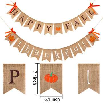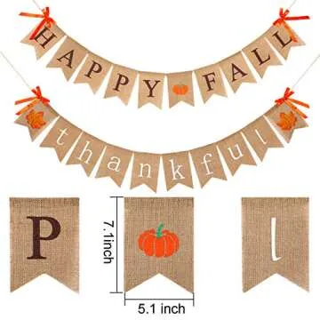 When compared to other holiday decorations on the market, our **Happy Fall Banner and Thankful Banner** set offers a unique blend of quality and aesthetics. Unlike many competitors that use cheaper materials, our natural burlap not only ensures a longer lifespan but also provides a cozy, rustic feel. Additionally, the pre-assembled design saves time over DIY options, making them a practical choice for busy hosts. The attention to detail, such as the simulated leaves and bow decorations, sets this banner apart, adding a sophisticated touch to your fall celebrations.