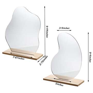Show moreIntroducing the **2 Pieces Irregular Aesthetic Vanity Mirror Set**, perfect for anyone looking to add a touch of elegance and charm to their daily skincare and beauty routines. This stunning set features two unique acrylic mirrors—one in a playful cloud shape and the other in a graceful water drop shape. Both mirrors come with a wooden base, adding durability and modern flair to your decor. Measuring approximately 9.45 inches for the cloud mirror and 9.84 inches for the water drop mirror, this duo is not only functional but also a stylish addition to any space.