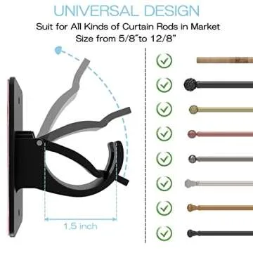 for curtain rods with diameters ranging from 5/8'' to