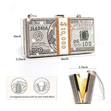 Unlike many evening bags on the market, the 2 Pieces Set Rhinestone US Dollar Money Purse excels in both design and functionality. While other purses often sacrifice space for beauty, this handbag combines a chic look with ample room for your essentials. Furthermore, its durable materials and lightweight design set it apart from competitors that may use lower-quality rhinestones or heavier fabrics. Additionally, the matching crystal headband provides a cohesive look unmatched by similar products.