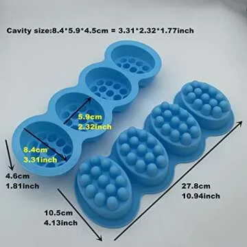 Show moreDiscover your creativity with our 2 Pieces Silicone Massage Soap Mold, an essential addition for any DIY enthusiast or artisan soap maker. This set includes two beautifully designed blue silicone molds, perfect for crafting elegant oval massage soaps that delight the senses. Measuring 27.8x10.5x4.6cm (10.94x4.13x1.81 inches) for the overall mold and 8.4x5.9x4.5cm (3.31x2.32x1.77 inches) for each cavity, these molds are optimally sized for creating luxurious soaps or delightful candy bars.