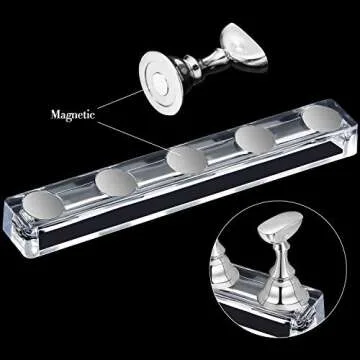 2 Set Acrylic Nail Art Practice Stands Magnetic Nail Tips Holders Training Fingernail Display Stands DIY Crystal Holders and 96 Pieces White Reusable Adhesive Putty(Silver)
