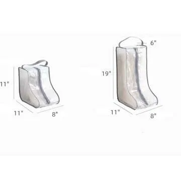 Show moreIntroducing the ultimate solution for organizing your shoe collection: the **Portable Boot Storage Bags**. This incredible 2-pack set includes two different sizes to accommodate all types of footwear, ensuring that your favorite boots and sneakers stay dust-free and protected. Made from **high-quality waterproof PVC**, these dust bags feature a durable zipper closure and a convenient carrying handle, making them ideal for both travel and daily use. With dimensions tailored for tall and short boots, you'll find these bags to be the perfect blend of functionality and versatility.