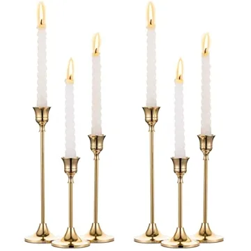 Elegant 6 Pcs Brass Gold Taper Candle Holders Set for Any Occasion