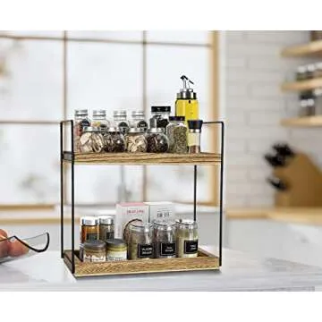 2 Tier Bathroom Organizer, Rustic Countertop Storage Shelf for Kitchen and Bathroom