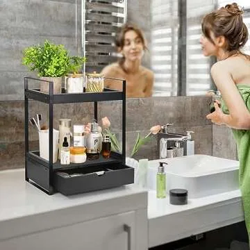 2-Tier Bathroom Organizer Countertop with Drawer - Stylish Storage for Home
