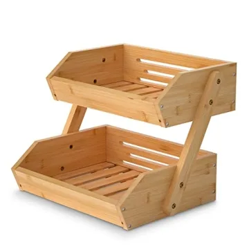 Show moreTransform your kitchen with the 2 Tier Fruit Basket! Crafted from high-quality mountain bamboo, this versatile fruit and vegetable storage bowl stand is not only a practical solution for your countertop but also a beautiful centerpiece that enhances your kitchen decor. Measuring 9.1" (L) x 11.8" (W) x 10.6" (H), it features a removable 2-tier design that maximizes space, allowing you to store a variety of food items with ease. It's perfect for holding crunchy apples, fresh potatoes, delicious cupcakes, or even kitchen utensils and towels. Let your kitchen shine with this stunning yet functional addition!