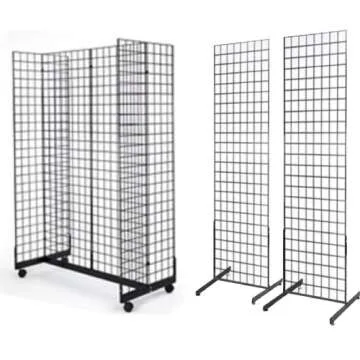 Show more The 2' x 6' Grid Wall Panel is an essential fixture for any retail environment, designed to maximize display opportunities while providing remarkable versatility. Built with a sturdy gondola base, this 4-sided floorstanding display offers easy visibility from all angles, ideal for showcasing a wide range of products. The sleek black finish not only adds an elegant touch but also enhances the aesthetic appeal of various store layouts. Whether you need to display merchandise in boutiques, trade shows, or exhibitions, this fixture seamlessly adapts to any setting, making your products stand out.