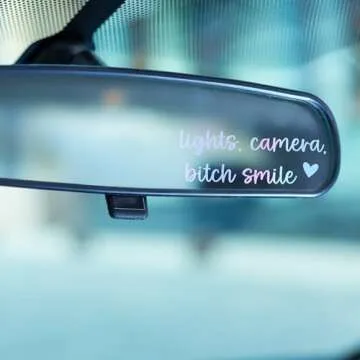 2 x Rear View Mirror Decal - Lights, Camera, Bitch Smile Decal for Car - Positive Affirmation Stickers - Lights Camera B Smile Sticker - Tumbler, Laptop Sticker - Gift for Her (Holographic Opal)