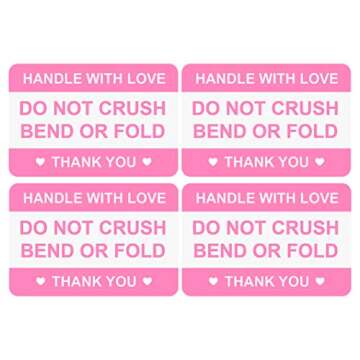 Show moreIntroducing the beautifully designed Poskornwel Handle with Love Labels! These vibrant pink 2"x3" adhesive stickers are the perfect solution for ensuring your packages are handled with care. Each pack includes 200 high-quality labels that are flexographically printed for durability and vivid color. With a gloss finish, these labels not only capture attention but also resist scuffs and scratches, ensuring your message stays clear throughout the shipping process. The bold text "Do Not Crush, Bend or Fold" clearly communicates essential handling instructions, making them an essential addition to your shipping supplies.