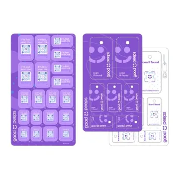 Show more Introducing the 20 Good Peeps Lost & Found Stickers and Tags - QR Labels for Water Bottles, Luggage, Laptops, Pet Collars, and More - Purple Pro Pack, an innovative solution designed for anyone tired of losing valuable personal items. From busy parents to frequent travelers, this product simplifies the process of recovering misplaced belongings through a secure and convenient method. Each sticker or tag contains a unique QR code that empowers those who find your lost items to notify you immediately, all while keeping your personal information private. Whether it be your child's favorite water bottle or your traveling luggage, these durable labels will ensure your possessions can always find their way back home.
