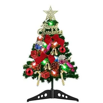 When compared to other mini Christmas trees on the market, our 20 Inch Mini Artificial Tabletop Tree stands out with its extensive decorations and vibrant LED lights, adding life to your decor. Many competitors offer trees with limited ornamentation, but our package includes everything you need for a complete and engaging decorating experience, right out of the box. Unlike other trees that might rely on traditional plug-in power sources, ours is battery-operated for ultimate convenience, allowing you to place it anywhere without worrying about outlets.