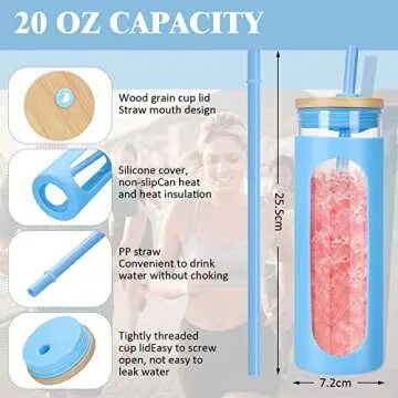 20 Oz Glass Water Tumble with Straw and Lid, Bamboo Lids Water Bottle, Wide Mouth Smoothie Cups, Reusable Iced Coffee Cup Straw Silicone Protective Sleeve for Office Daily Life Home, 3 Packs