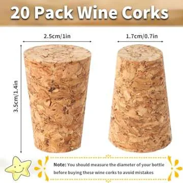 Show more If you're looking for a versatile and essential addition to your home bar or creative crafting supplies, our wooden tapered cork plugs are just what you need! Packed with 20 sturdy and durable corks, these plugs are designed for frequent use, making them perfect for both daily wine enjoyment and various arts and crafts projects. Crafted from high-quality natural soft wood, these corks are free from harmful substances and are an eco-friendly choice for your wine sealing needs.