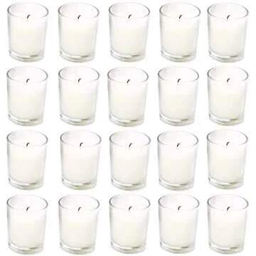 Classic 20 Pack Unscented Clear Glass Votive Candles for Elegant Events