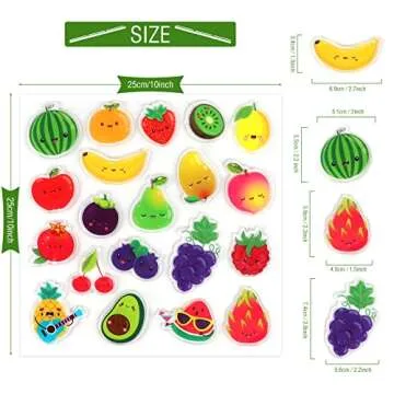 20 PCS Fruits Thick Gel Clings Fruits Window Gel Clings Decals Stickers for Kids Toddlers and Adults Home Airplane Classroom Nursery Fruits Party Supplies Decorations Removable and Reusable