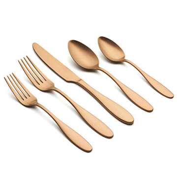 20 Piece Matte Copper Silverware Set, Ornative Ellie Flatware Cutlery Set Service for 4, Includes Knives, Forks, Spoons, Food Grade Stainless Steel Utensil Set for Home Kitchen Restaurant