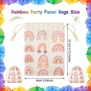 20 Pieces Rainbow Party Favor Bags Boho Rainbow Party Decorations Bags 4.7 x 3.5 Inch Mini Canvas Rainbow Gift Bag Drawstring Treat Gift Pouches for Gay Pride Day Party Supplies Kids Birthday