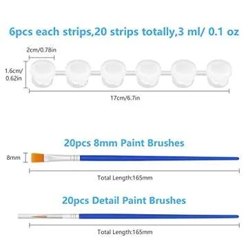 Each of the clear storage containers is carefully crafted for durability and convenience. They feature a secure lid that ensures a tight seal, preserving your paints and avoiding any mess during storage. Each pot has a capacity of approximately 3 ml (0.1 ounces), perfectly sized for any young artist's needs. Plus, the lightweight design of the paint brushes, with their durable plastic handles, makes for easy handling and minimizes fatigue during extended painting sessions.