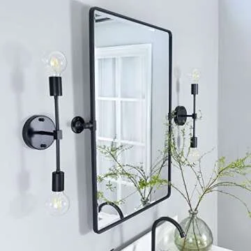 20 x 24 ‘’ Farmhouse Black Metal Framed Pivot Rectangle Bathroom Mirror Rounded Rectangluar Tilting Beveled Vanity Mirrors for Wall Décor