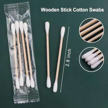 200 Pack Cotton Swabs, Individually Wrapped Cotton Swab, Individually Wrapped Double Tipped Wooden Sticks for Ear, Make-up(4pcs per Bag, 200 Bags, Double Round End)