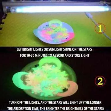 - Brightly Glowing: After just a short exposure to light, these stars radiate a soft, soothing glow that helps ease children's fears of the dark.