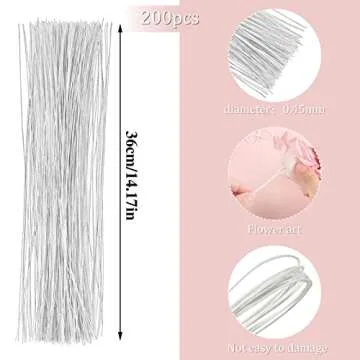 Show more Introducing the ultimate crafting companion, the Value Kit of 200 pieces of 26 gauge White floral wires! Each wire measures an impressive 14 inches in length and has a diameter of 0.02 inches, making it perfect for all your floral arrangements and DIY projects. Crafted by a renowned brand known for its commitment to quality, these florist wires are made from high-quality iron, ensuring durability and resistance to rust, which means you can rely on them for multiple projects without worry.