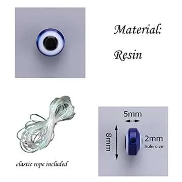 Show more Discover the world of creativity with our stunning 200pcs Mixed Evil Eye Beads. Each bead, measuring approximately 8mm in diameter and 4-5mm in thickness, is crafted from high-quality resin, ensuring that they are not only visually appealing but also durable enough for various DIY projects. These vibrant beads come complete with a clear elastic string, making it a breeze to create beautiful jewelry like bracelets, necklaces, and pendants. The evil eye motif is steeped in history and cultural significance, symbolizing protection against negative energy, which adds an emotional element to your creations.