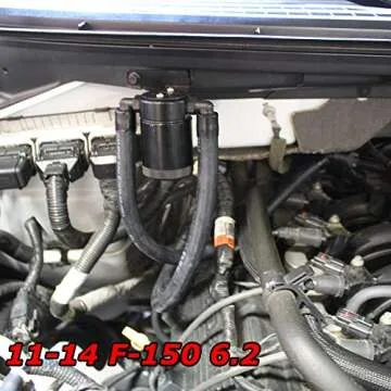 The JLT Oil Separator is compatible with 2011-2019 Ford F150 models, including those with 2.7EB, 3.5EB, and 5.0 engines.