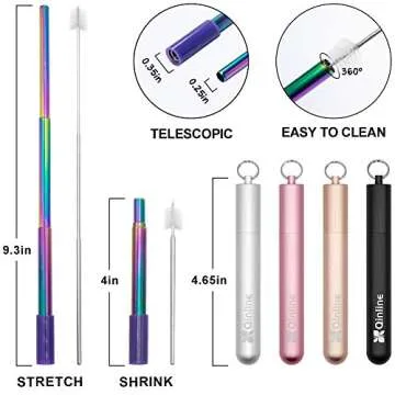 Show more If you’re on the hunt for a versatile, eco-friendly gift that combines practicality and style, look no further than the innovative collapsible metal straws from our renowned brand. These straws are designed not only for convenience but also to promote sustainability by reducing plastic waste. Perfect for on-the-go sipping, each straw folds neatly into a compact case that can effortlessly fit in a purse or pocket.