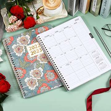 Show more This exquisite planner is designed for anyone looking to elevate their organizational skills with style and functionality. The 2022-2023 Academic Planner, available from July 2022 to June 2023, features a thoughtfully laid-out design that caters to both weekly and monthly planning needs. With colorful covers that shine against elegant gold binding, it brings joy to your everyday scheduling. The planner includes 12 printed monthly tabs, allowing you to access your plans with ease and efficiency.