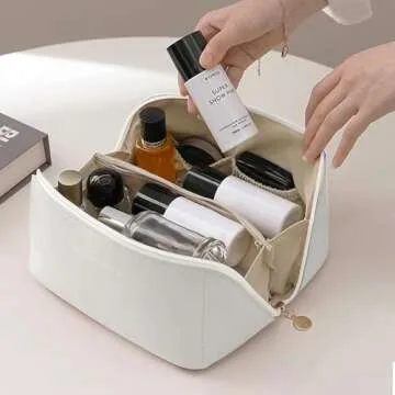 2022 New Travel Cosmetic Bag for Women?PU Leather Waterproof Portable with Handle and Divider?Hanging Travel Toiletry Bag Large Capacity Cosmetic (White)