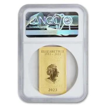 Show moreIntroducing the exquisite 2023 AU 1 oz Australian Gold Dragon Bar Gem Uncirculated First Day of Issue, a stunning piece crafted at the renowned Perth Mint in Australia. This extraordinary gold bar, made from 1 ounce of 24 Karat Gold, is a part of the prestigious Lunar series, celebrating the Year of the Dragon. Each bar features the iconic dragon design, symbolizing strength and good fortune, making it a must-have for collectors and investors alike. Certified by the Numismatic Guaranty Corporation (NGC) as Gem Uncirculated, this impressive bullion piece comes with a unique First Day of Issue (FDOI) Lunar Label, adding an exclusive edge to its value. With limited mintage, it is not only an investment but also a reflection of exquisite craftsmanship that can be cherished for generations to come.