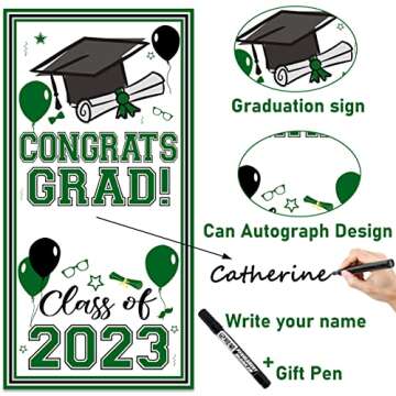 2023 Graduation Door Cover Green Personalized Name Graduation Decorations Large Congrats Grad Banner With A Marker Pen Class of 2023 Door Cover Graduation Sign for Indoor Outdoor Front Door Background