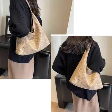 2024 Woven Leather Tote Bag for Women Top-handle Shoulder Bag, Hobo Bags Large Capacity Soft Vegan Crossbody Handbag Underarm (apricot)