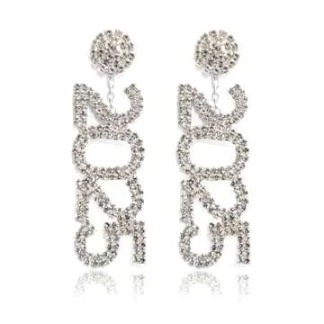 2025 Letters Rhinestone Dangle Earrings Tassel Happy New Year Earrings for Women New Year’s Eve Party Earrings Holiday Festive Jewelry-Style F