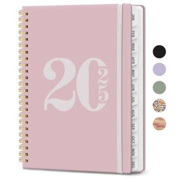 2025 Planner Weekly and Monthly, January 2025 - December 2025, Hardcover 2025 Calendar Planner Book with Tabs, Inner Pocket, Ideal for Office Home School Supplies - A5 (6.3" x 8.5"), Spiral Bound, Pink