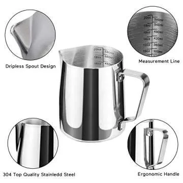 20oz Milk Frothing Pitcher, Stainless Steel Espresso Latte Cup Steaming Pitcher Creamer Cup, Milk Frother Cup Espresso Machine Accessories Barista Tools Jug for Coffee Cappuccino with Latte Art Pen