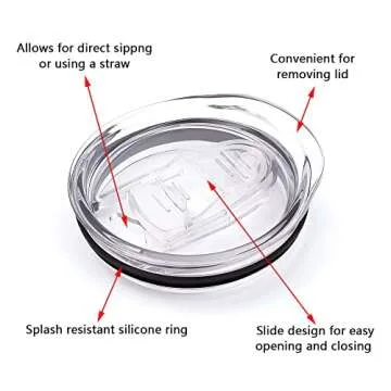 Show more Enhance your hydration game with our 20oz Skinny Tumbler Replacement Lids! This 3-pack of lids is expertly designed to perfectly fit your favorite 20oz skinny stainless steel tumblers, including popular brands like YETI Rambler. Each lid features advanced double-sealing technology to ensure maximum leak-proof performance, so you can take your favorite hot or cold drinks on the go without the worry of spills. The unique air-tight design keeps your beverages at the optimal temperature for longer, making every sip refreshing, just as it was meant to be.