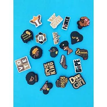 Show more Introducing an exciting way to express your individuality and passion for justice - the Moifom Black Lives Matter shoe decoration charms! With 20 unique pieces in each pack, these charms are designed to add a vibrant flair to your shoes, sandals, or clogs. Made from high-quality environmentally friendly PVC material, they are not only stylish but also safe and non-toxic, ensuring peace of mind while you showcase your beliefs.