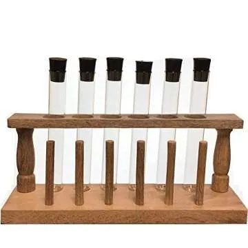 20x150mm Glass Test Tube Set with Rubber Stoppers and Wood Rack, 6 Piece Set, Karter Scientific 150A4
