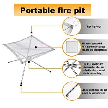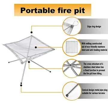 Show moreIntroducing the 22 Inch Portable Outdoor Fire Pit by VONYDA, the perfect companion for your outdoor adventures! Designed with the modern outdoor enthusiast in mind, this collapsing steel mesh fireplace seamlessly combines functionality and portability, making it ideal for everything from beach outings to cozy backyard gatherings. Its innovative foldable design allows for easy transport and storage, while its sturdy steel construction ensures durability and resilience through many seasons of use.