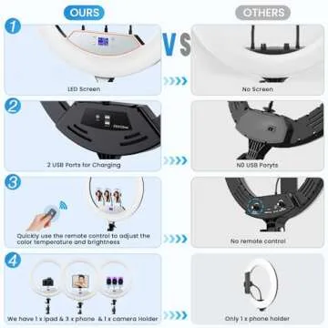 22'' Ring Light with 75'' Tripod Stand, LED Display/2 USB Ports/6500K Dimmable Ring Light for ipad Phone Holder for Tattoo Lash Live Makeup Video Recording TikTok Barber Stylist Photography