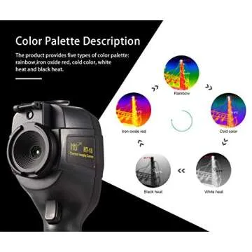 - Versatile Color Palettes: Tailor your visual experience with five customizable palettes—Rainbow, Iron Red, Cold Color, Black and White, or White and Black—enabling precise readings based on your environment.