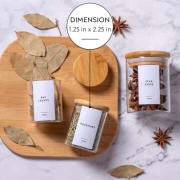 222 Minimalist Spice Label Set, Black Text on White Matte Vinyl Waterproof Label Sticker - Fits on Round, Square and Rectangle Glass Jars - Organize Kitchen and Pantry