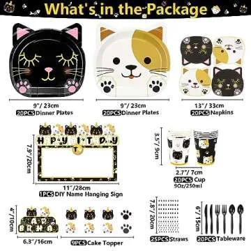 222 Pcs Cat Birthday Party Decorations - Cat Balloons, Birthday Banner, MEOW Garlands, DIY Hanging Sign, Cake Topper, Plates, Napkins, Cups, and Tablecloth for Pet Cat Birthday Party Supplies