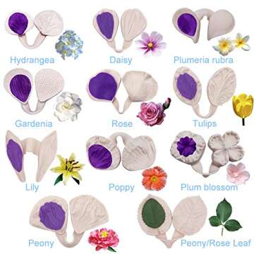 22pcs Gumpaste Flower Silicone Mold- Fondant Silicone Veining Mold, Sugarcraft Flower Making Tools for Gumpast Rose Peony Lily Calliopsis Tulips Wedding Flower Cake Decorating