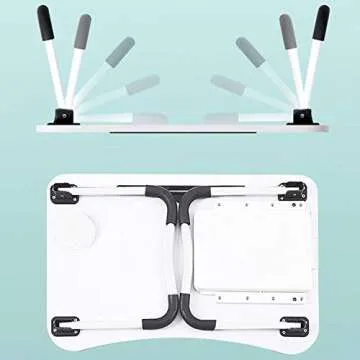 23.6'' Ergonomic Lap Desk with Storage Drawer & Cup Holder, Foldable Laptop Bed Table for Home Office, Gaming, Writing, Breakfast - Lightweight, Portable, Fits 18'' Laptops (White)